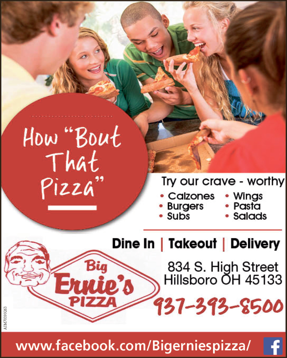 Ads for Big Ernie's Pizza in Hillsboro, OH
