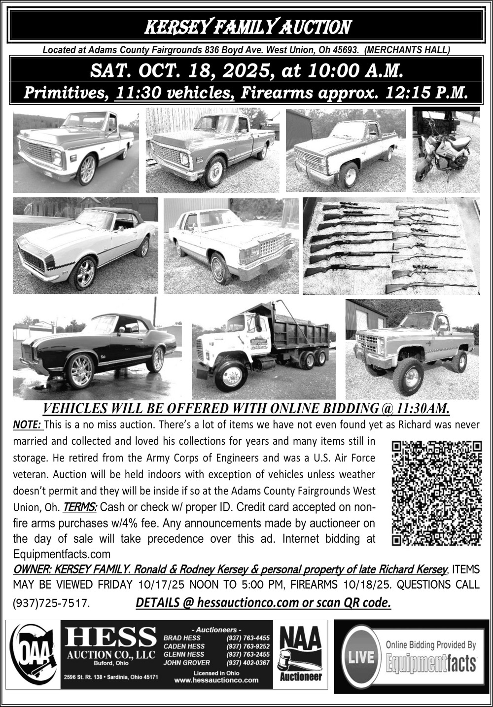 Oct 11, 2025. Hess Auction Co Auctions Ads from Times Gazette