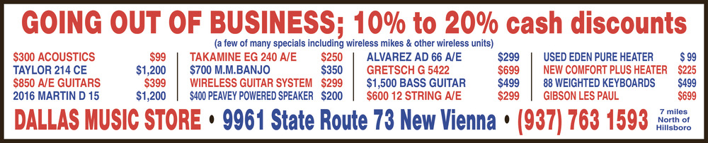 Ads for Dallas Music Store in New Vienna, OH