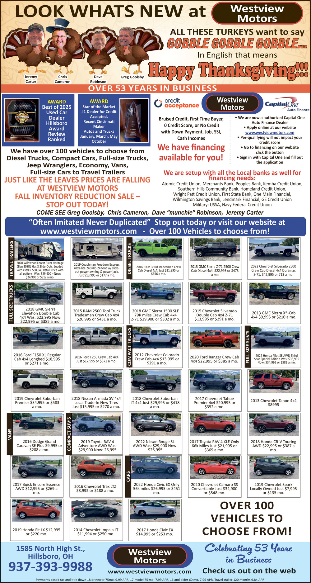 Nov 30, 2025. Westview Motors - Hillsboro Auto Dealers Ads from Times Gazette