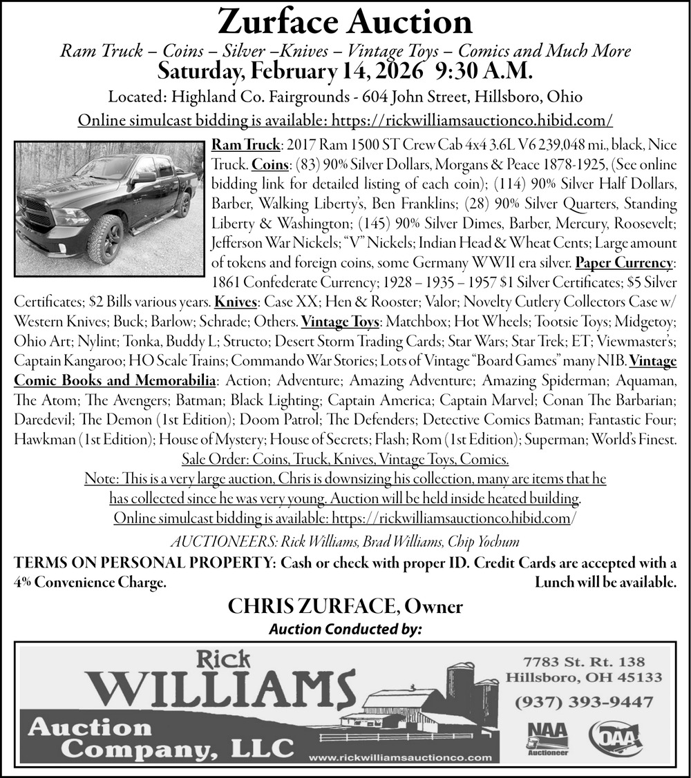 Ads for Rick Williams Auction Company, LLC in Hillsboro, OH