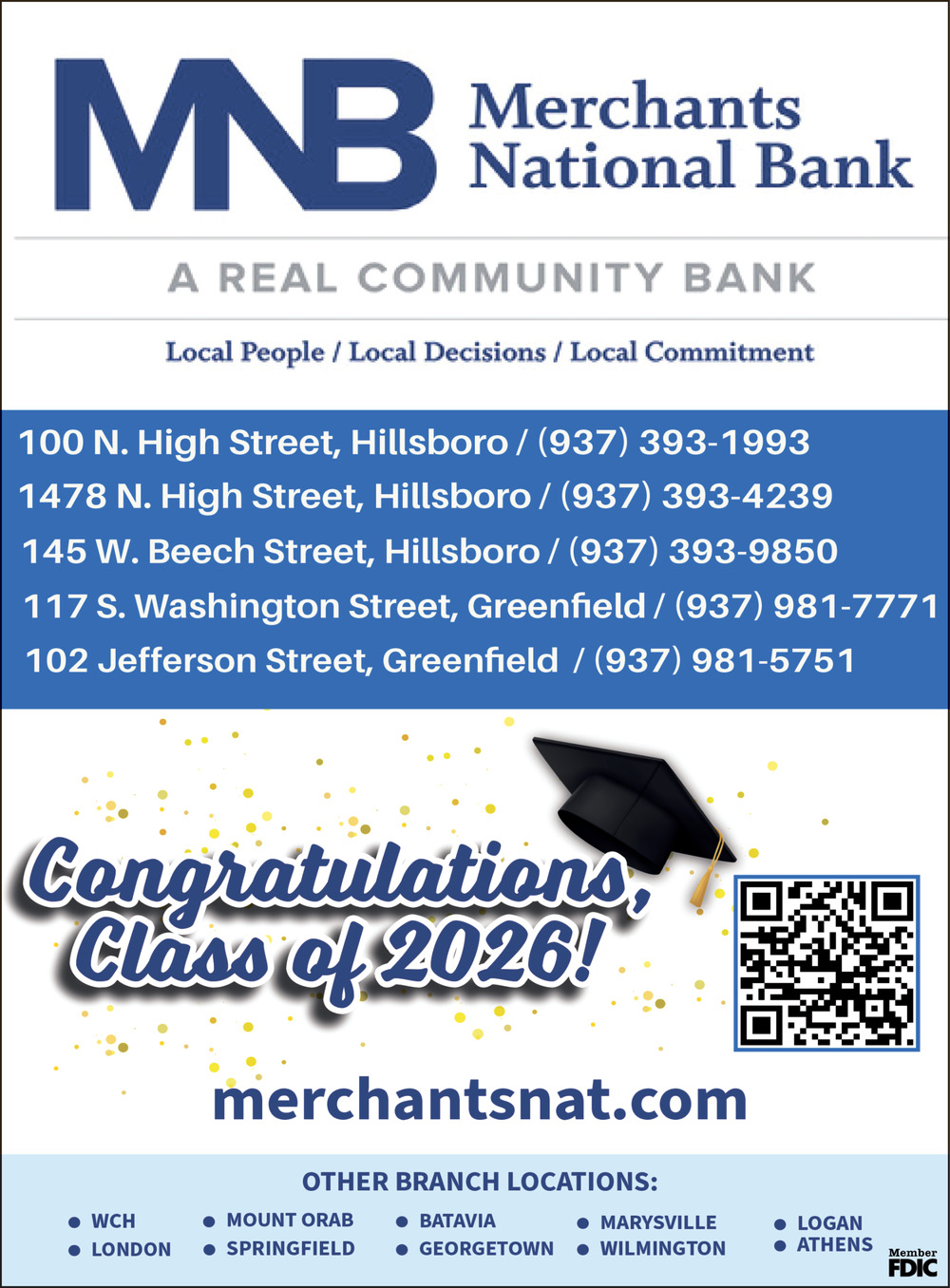 Ads for Merchants National Bank in Hillsboro, OH