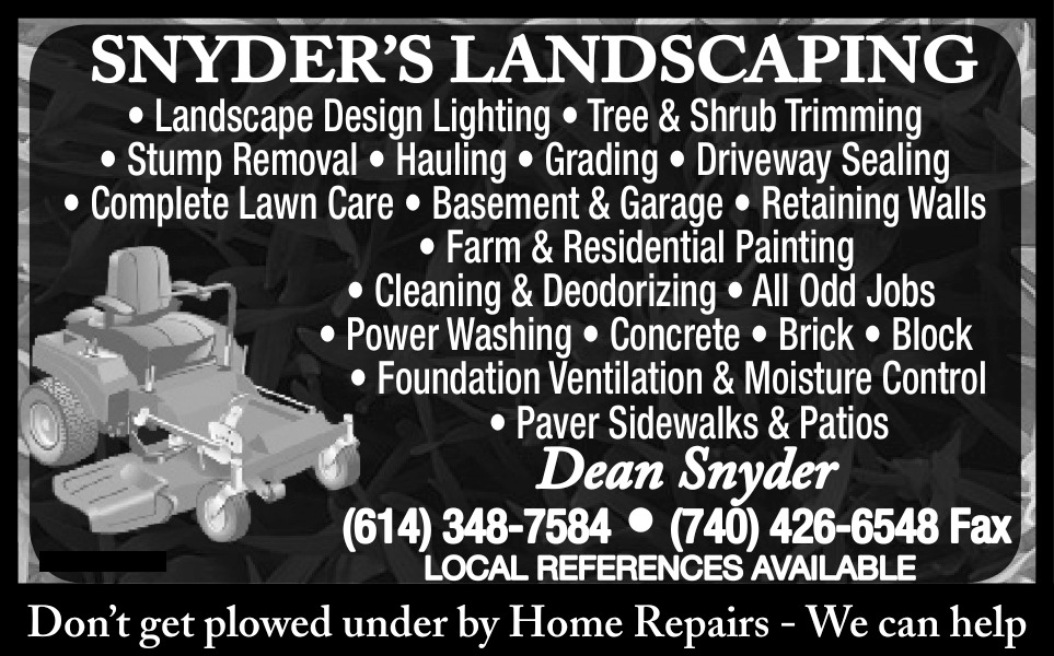 Ads for Snyder's Landscaping in Hillsboro, OH