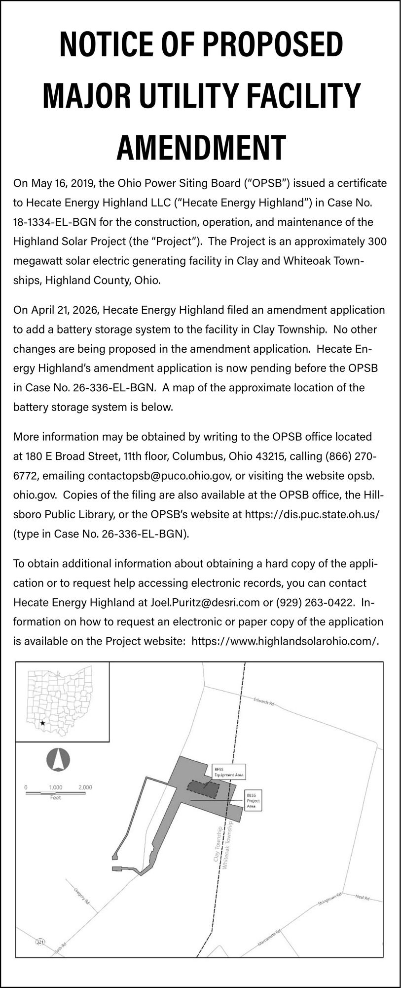 Apr 25, 2026. Hecate Energy Highland LLC Electric Ads from Times Gazette